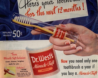 Dr West Toothbrush Etsy from i.etsystatic.com (first toothbrush with nylon & bristle). The first such toothbrush was called dr. This brush was called dr. Once the war was over they brought back this habit to everyone in the u.s. Who is a good patient to recommend an electric toothbrush to? West's tooth paste vintage magazine advertisement package of smiles ~ package of smiles! What's miraculous about a toothbrush? This is an original ad and is approximately 9 x 12 ½.